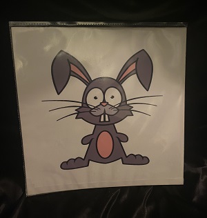 The magician shows a large funny looking rabbit (8.5") on both sides. One rabbit is shown to be pointing to the left and the other to the right. The comedy begins when the rabbit begins to change and points the opposite way, both to the right, then both to the left, then up and down. Each time the card is turned over the rabbits change direction