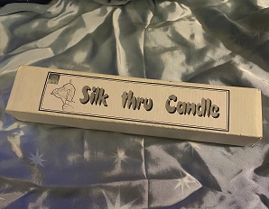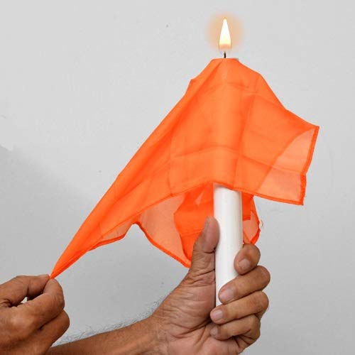 You light a candle. Then you bring out a silk scarf which you drape over the candle. You then take the candle and pass the flame right thru the silk scarf! You now continue to pull the silk scarf back & forth, while the flame continues to penetrate the scarf & is completely visible burning above the scarf!