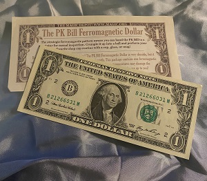 Finally, a single ply ferromagnetic dollar, shim free and easy to use! The PK Bill Ferromagnetic Dollar looks like an ordinary U.S. dollar, but it sticks to magnets. Perform amazing PK magic under impossible conditions!