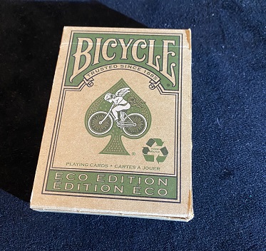 Aiming at eco-conscious players, the Bicycle® Eco Edition decks come with a fully recyclable tuck case and playing cards. All the playing cards have been produced using only starch-based laminating, vegetable inks, and sustainable forest paper. The back design of the cards and all the red faces feature a desaturated forest-green color.