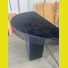 Comes with nice push 1/2 moon table top. Can be used with or without as the actual table top has a black plush table top. Back comes off to store props and latches closed. Table is on wheels and will roll