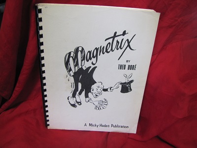 A how-to book on magic tricks using magnets, illustrated with b/w drawings. Measures 8.75" x 11" with 54 pages. Contents is printed on one side only. Plastic spiral binding. Minor stain on back cover has no impact on the contents.